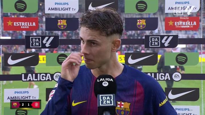 依靠佩德里与阿劳霍的精彩进球,巴萨在主场以2-1的比分绝杀赫罗纳,前锋费尔明在赛后代表球队,面对媒体发表了感言。